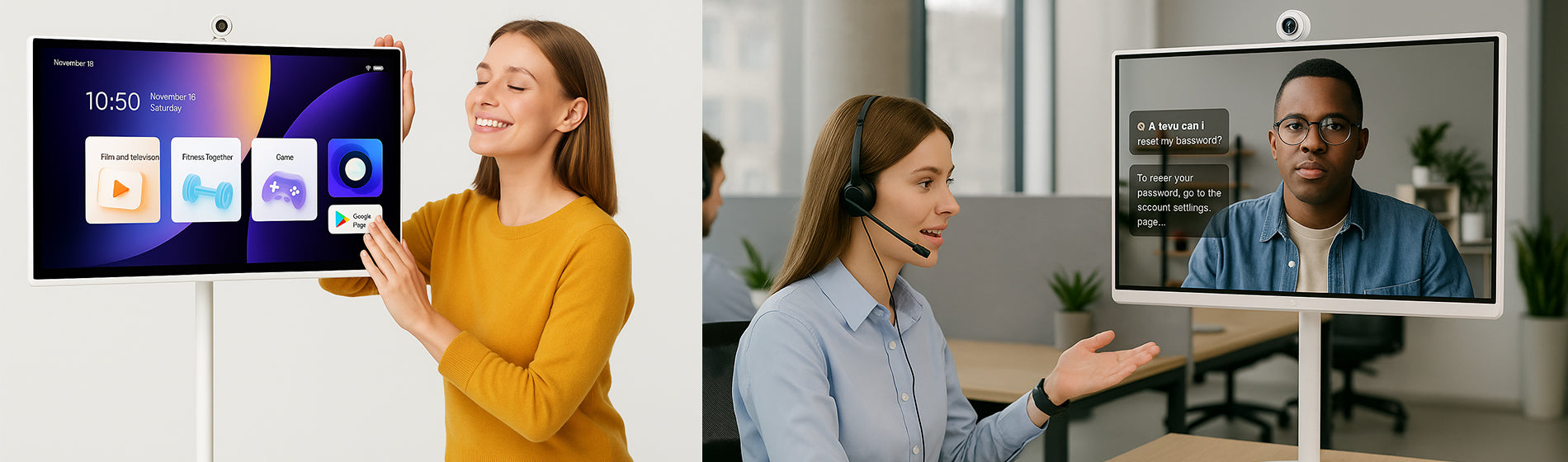 The TV supports seamless wireless connections to laptops, smartphones, and tablets via Wi-Fi or Bluetooth. This eliminates the need for tangled cables and allows for easy content sharing in meetings or events.